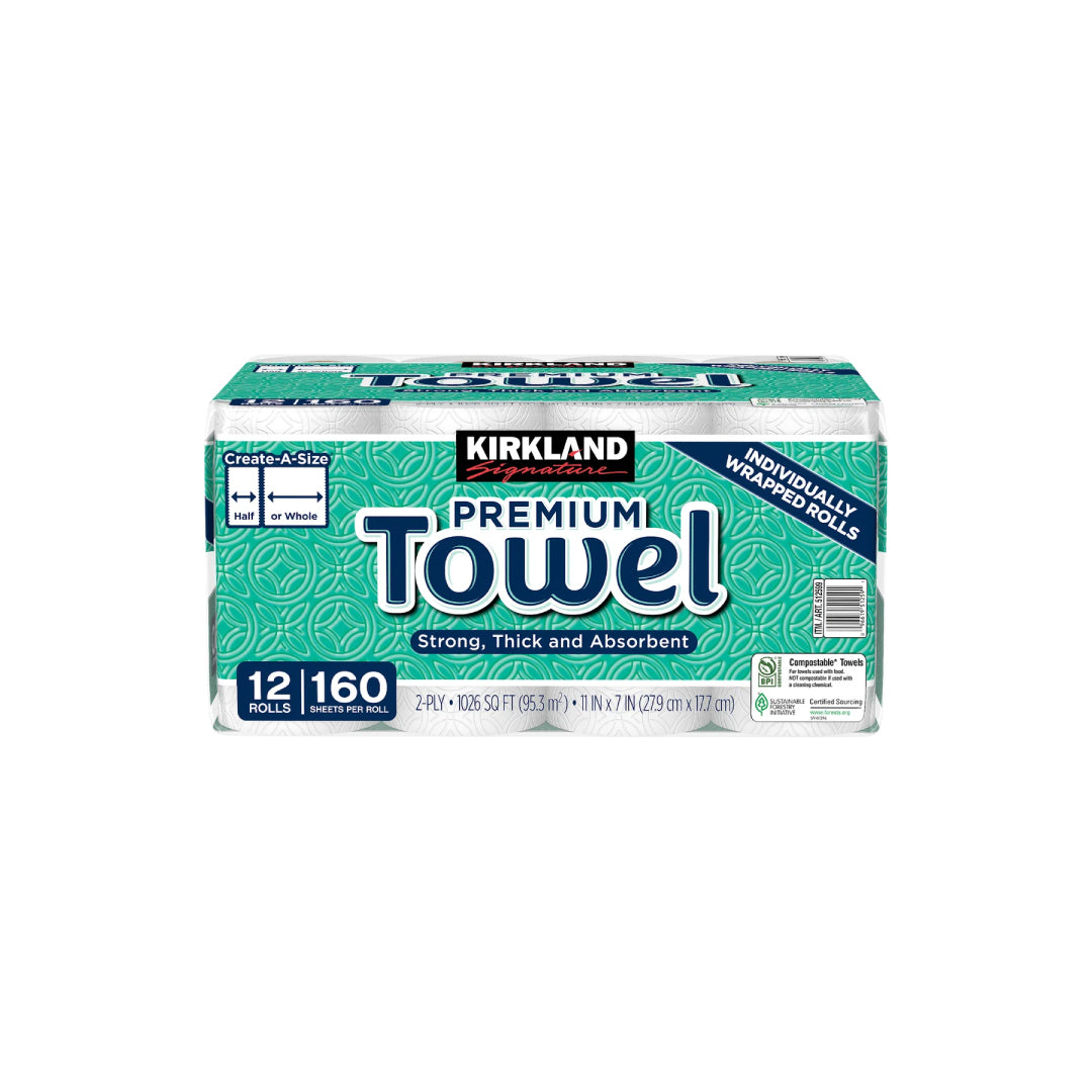Kirkland Signature Paper Towels, 2-Ply, 160 Sheets, 12 Individually Wrapped Rolls